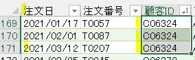 例えば、上の画像であれば「顧客ID / CO6324」の最終注文日「2021/03/12」を集計します
