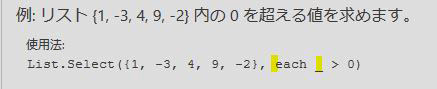 すると、上の画像のようにM関数「List.Select」解説が表示されます