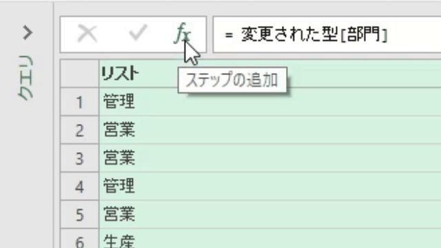 これで、数式バー内が前ステップ名「部門」を参照するだけの内容になりました