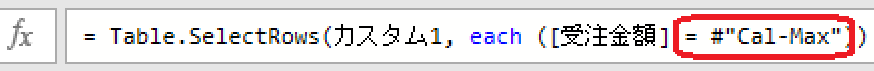 まずは、3回目と同じ様に「変換タブ」から最高値を出すと「数式バー」は以下の画像のようになっています