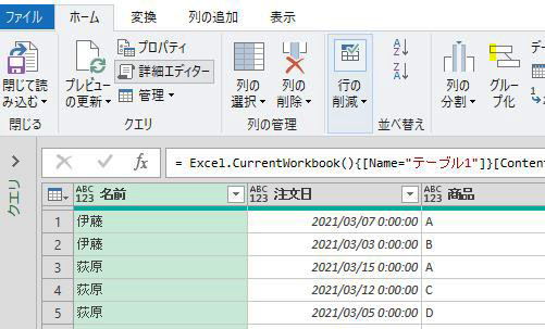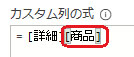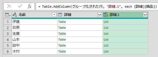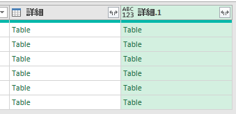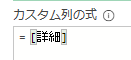 次の画像の「詳細.1」列が、上の画像から出力されたカスタム列の内容です