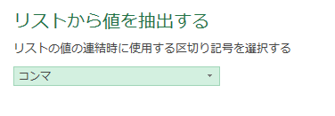 上のGIF画像のように「値を抽出する」を選択した後は、リストの「区切り記号」を指定できます