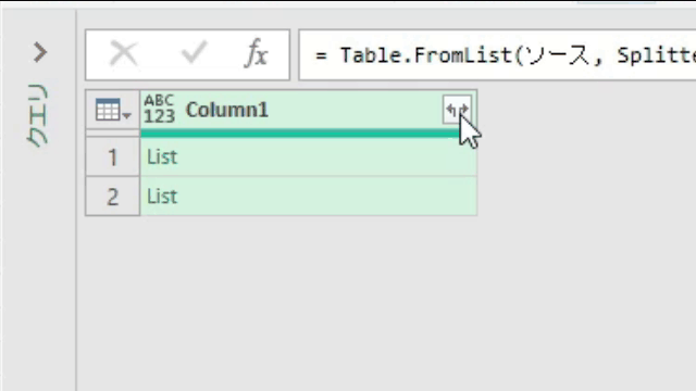 上の画像のリストを一旦、テーブル化した後、黄色に印を付けた「展開マーク」をクリックをすると「値を抽出する」が選択できます