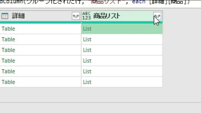 グループ毎にテーブルを作成したら、「カスタム列・作成画面」にて各テーブルからリストを作成しておきます