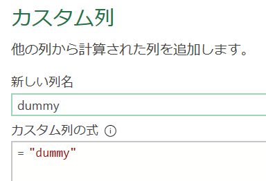 この場合は、一旦、カスタム列作成画面で「ダミー列」を追加します