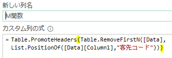 こちらは、M関数/Table.PromoteHeadersの()の中にこれまでの内容を入れるだけです