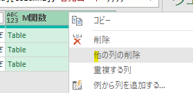 上の画像の内容で、各テーブルを展開処理すればいいのですが、その前に既存の列は削除しておきましょう