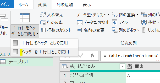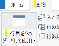 変換タブにで「ヘッダーを1行目として使用」をクリックします