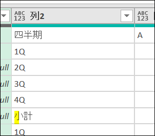ここからフィルで一気に空欄を埋めたいところですが、よくみるとnullでなく「列・・・」で埋まってしまっています