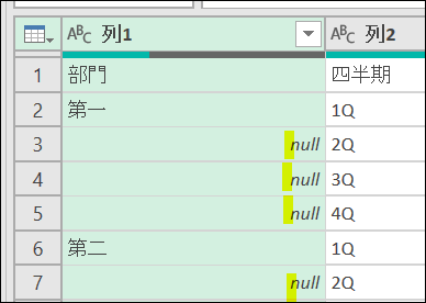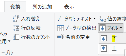 下の方向でフィルを行えば、下の画像のようにnull/空欄が埋まります