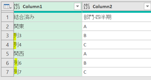 列のマージを行ったことで、表がシンプルに整理されてきました