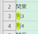 ここから「関東・・・の行」も含めた形で行列の入れ替えを行います