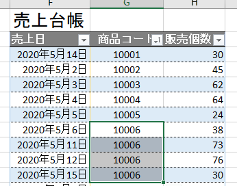 「商品コードが10001、10002・・・10006は4つあるので1個にカウントして、全部で6個あります」