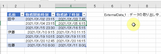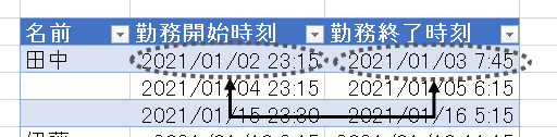 まず、「勤務終了時刻」次に「勤務開始時刻」の順番で「Ctrlキー」を押しながら選択してください
