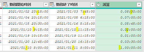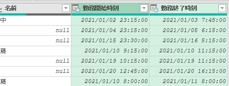 この事例で私が使ったサンプルデータの時刻欄に空欄のあるデータがありました。nullと表示され、このレコードの欄は演算結果がErrorとなりました。開始・終了時刻のデータが複数あり、レコードによって不要な計測は使用されないといった場合があります。このような事例も加えていただけるとありがたいです。