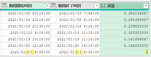 ・時間の引き算は「 日付.時間:分」で 表示されている