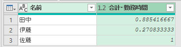 すると、次のように「勤務終了時刻-勤務開始時刻」の差が時間単位で計算されます