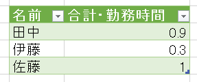 グループ化した結果、次のように名前別に合計勤務日数が計算されました
