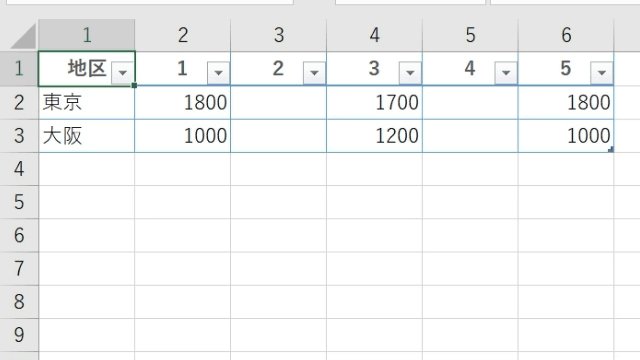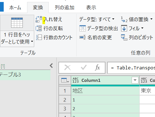 ヘッダー行を下げておくことで、見出しも2回にわたる行列入れ替え操作の対象となります