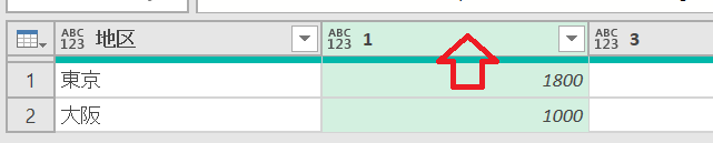 ですので、1行目をヘッダーに上げます