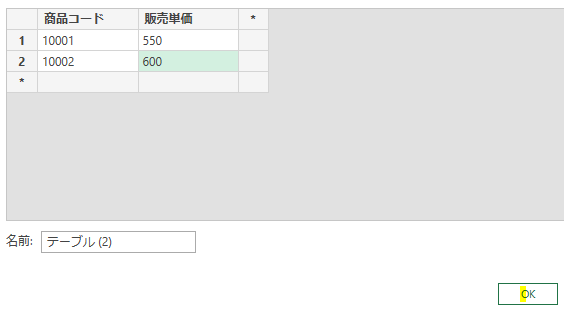入力が完了して、入力画面下のOKボタンを押せば、クエリが新たに作成されます