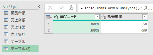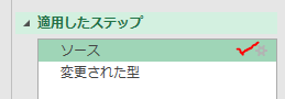 入力したデータを修正する際には、適用したステップの欄の「ソース」の右横にあるマークをクリックします