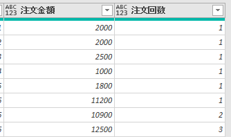 上の画像では、その前の画像の表から注文回数を「1回」に絞り込んであります