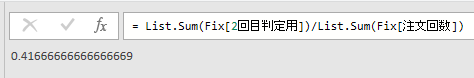 つまり、「2回目判定用」の列の合計を「注文回数」の列の合計で割れば2回目のリピート率が出るという仕掛けになります