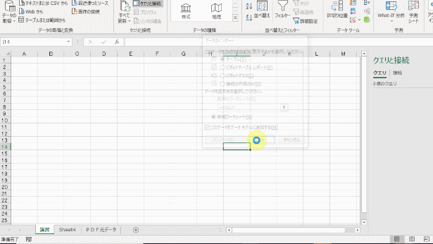 エクセルの、データ>データの取得>ファイルから>『ここに“PDFから”があるはず』