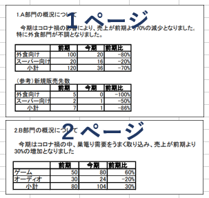 サンプルのPDFファイルは2ページに分かれており、以下のように2ページ内に3つの表があります