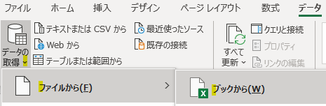 ①データタブ➡データの取得➡ファイルから➡ブックから