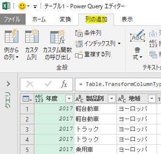 Power Queryエディターを起動したら、列の追加タブをクリックしてください