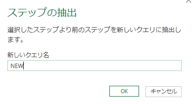 すると次の画面になるので、新たなクエリ名を入力してOKボタンを押します