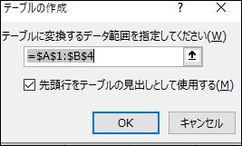 ➁テーブル作成のポップアップが出たらOKをします