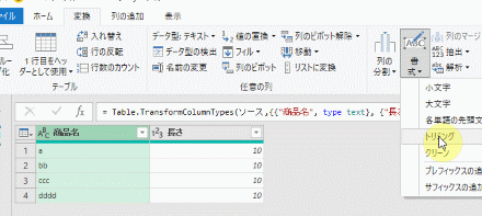 Power Query Editorが立ち上がったら、事前にトリミングを行う列は選択しておきます