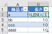 エクセルシートに読込んで、文字の長さをLEN関数で測ってみましょう