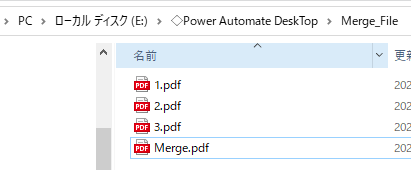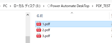 下の画像にあるように、1つのフォルダに3つのPDFファイルが格納されています