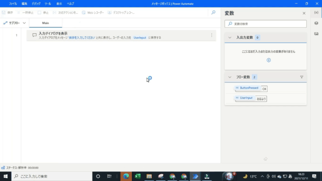 入力ダイアログボックスを表示できます。ダイアログボックスに入力した内容は変数に格納されて後のアクションで使い回せます