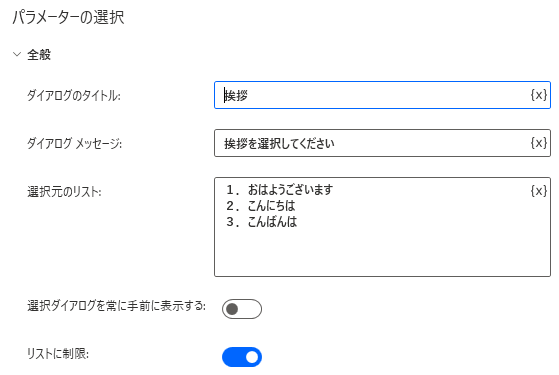 選択するリストを設定できます(Enterキーで改行しながら設定します)