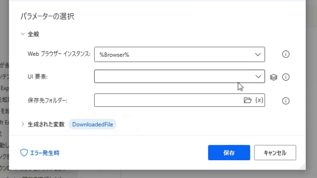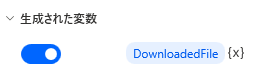 このアクションを指定する際には、下の画像のように「DownloadedFile」という変数が自動されます