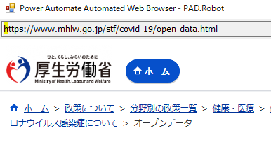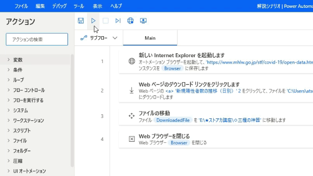 今回はPADでHPを開いてファイルをダウンロードするシナリオを作成しました