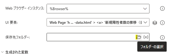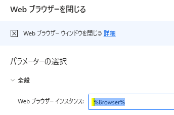 このアクションを指定する際には、下の画像のように「Browser」という変数が自動されます