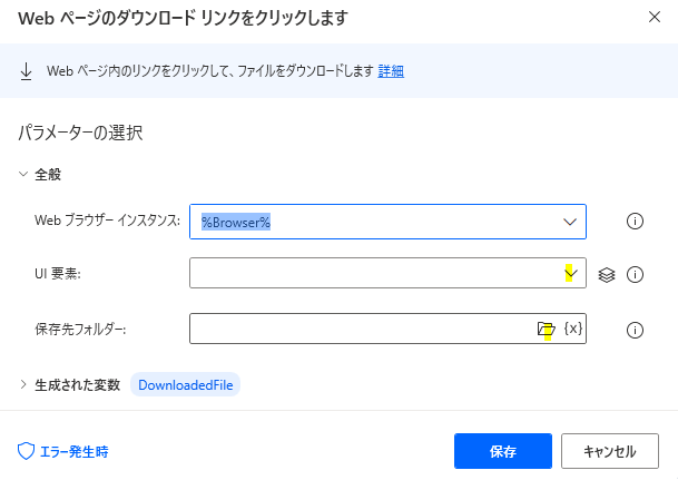 選択するアクションは「Webページのリンクをクリックします」ではなく「・・・ダウンロードリンク・・・」になります