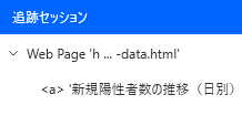 すると左クリックしたリンクの名称が、上の画像のように「追跡セッション」に表示されます
