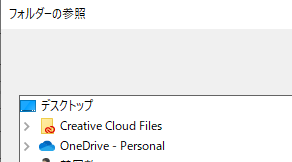 上の画像の黄色の印を付けた箇所をクリックすると、フォルダの指定画面が開きます
