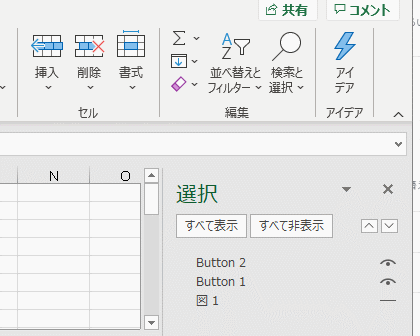 検索と選択でオブジェクトに”図1”という名前を付与した上で、コードの中にオブジェクト名を組み込んでいます。ここが今回の回の一番のポイントです