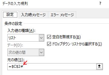 リストの「元の値」として、候補データが出力される最初のセルを指定しましょう!