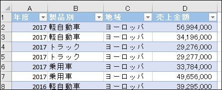 という方の為に、奥の手がエクセルにはあります。それがテーブル機能です。