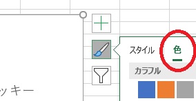 グラフをクリックすると右上に下のような筆マークが出てくるで、マークの右側の”色”をクリックします。