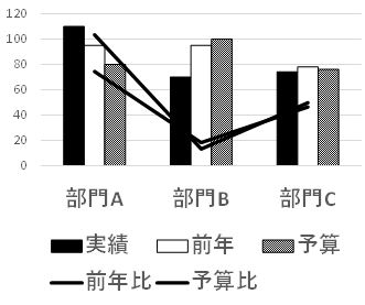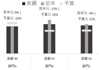 たもに実績説明の場でこんなグラフを見ますが、白黒だととても理解できないものになってしまいます
